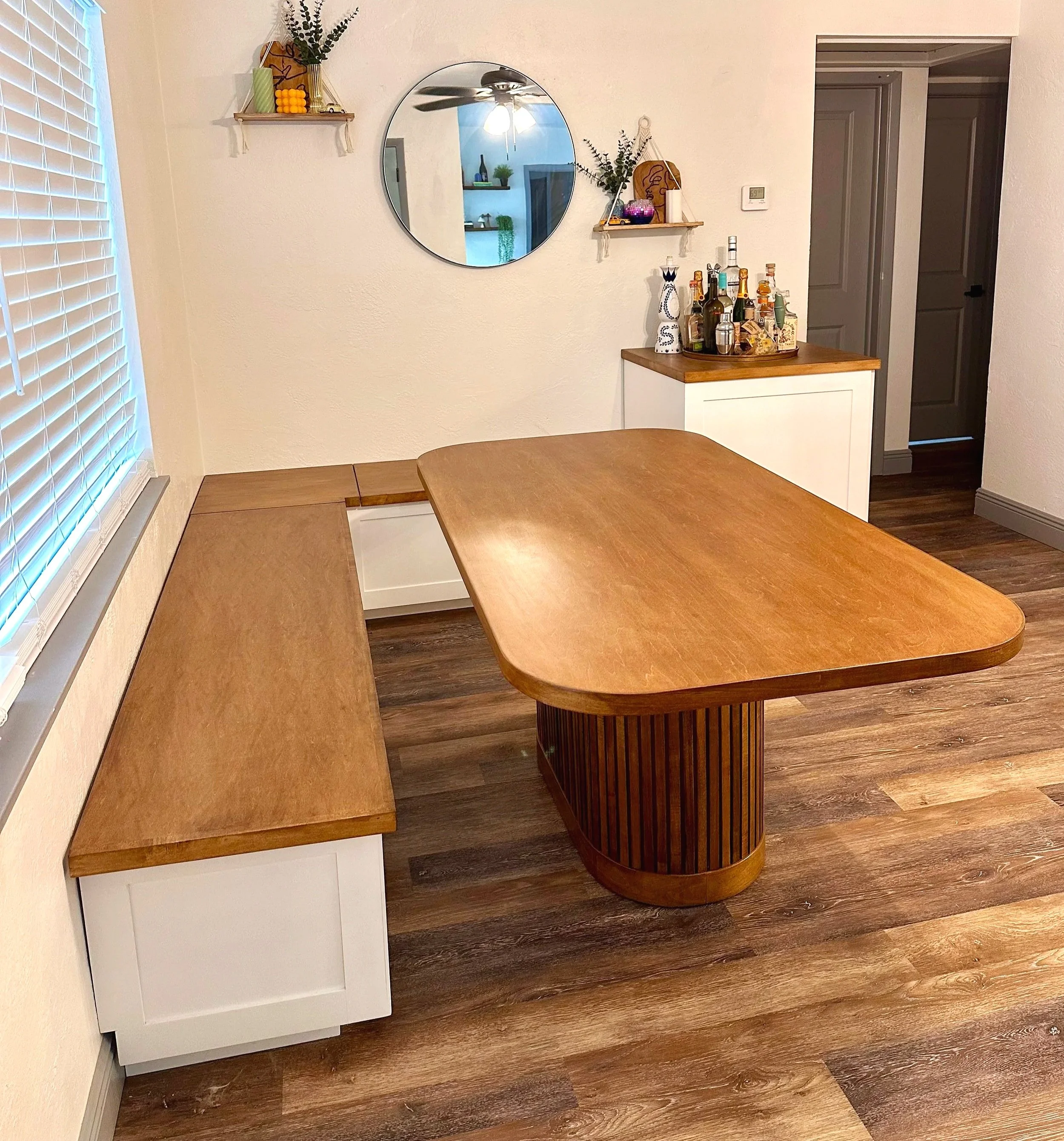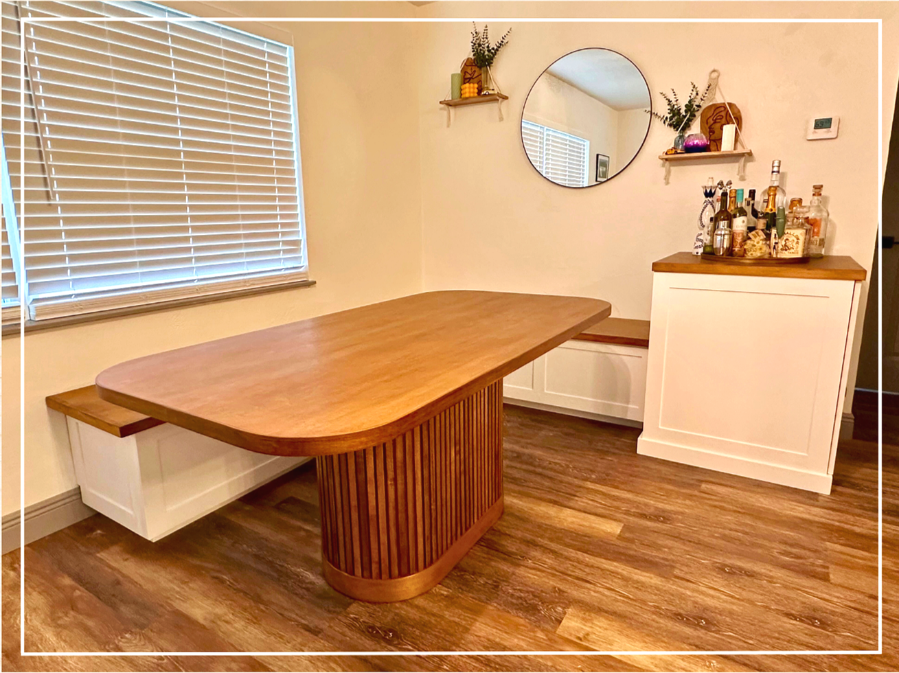 Plank’s End is a husband-and-wife artisan team in St. Pete, creating custom woodwork that’s as functional as it is beautiful. Whether you’re dreaming up a one-of-a-kind table, struggling to make the most of an awkward layout, or hoping to breathe new life into a well-loved piece, you’re in the right place.